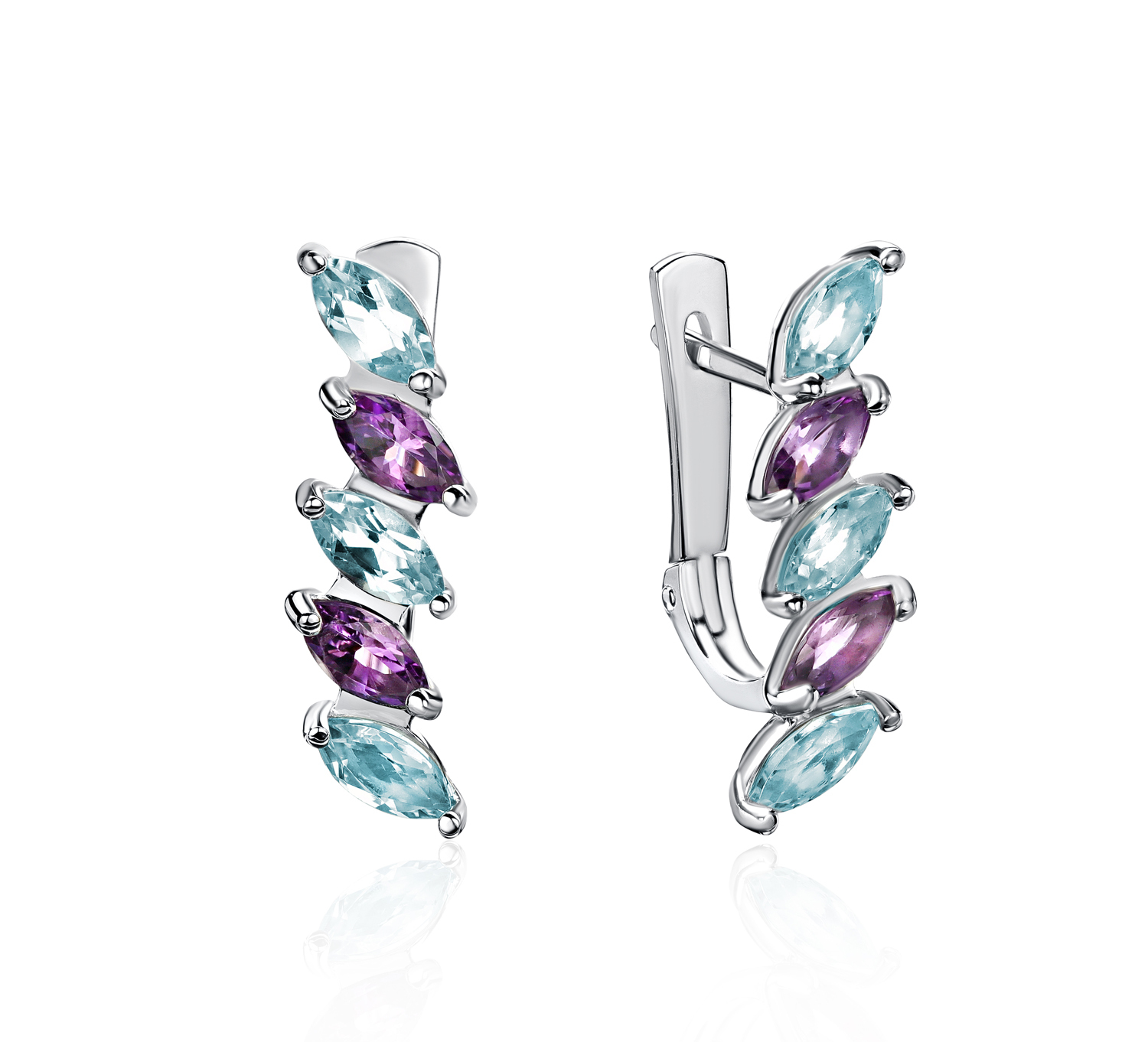 Серьги с аметистом из белого золота 585 пробы :: Вставки: АМЕТИСТ МАРКИЗ 0/0 4шт.,0.77ct # ТОПАЗ МАРКИЗ 0/0 6шт.,1.81ct